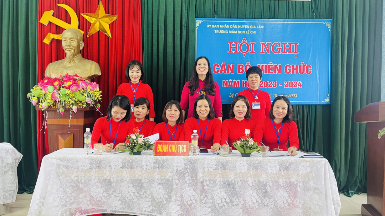Thực hiện công văn số 218/GD&ĐT ngày 19 tháng 09 năm 2023 của phòng giáo dục và đào tạo Huyện Gia Lâm về việc tổ chức hội nghị CB,VC, NLĐ năm học 2023-2024, được sự đồng ý của UBND- LĐLĐ- phòng GD& ĐT Huyện Gia Lâm, hôm nay trường mầm non Lệ Chi tổ chức hội nghị cán bộ, công chức, viên chức năm học 2023-2024.