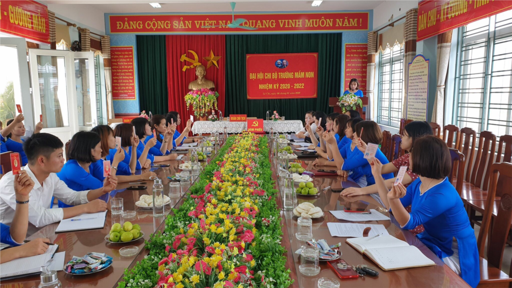 Về dự với Đại hội, có đồng chí Vũ Thị Vui - Phó bí thư Đảng ủy, Chủ tịch HĐND xã; các đồng chí trong Tổ công tác chỉ đạo đại hội cùng toàn thể các đồng chí đảng viên trong chi bộ đã về dự đông đủ. Đại hội diễn ra trong không khí thi đua sôi nổi lập thành tích chào mừng 90 năm Ngày thành lập Đảng Cộng sản Việt Nam. Sau một buổi sáng làm việc hết sức khẩn trương, nghiêm túc, trung thực, thẳng thắn và dân chủ, Đại hội Chi bộ trường mầm non, nhiệm kỳ 2020 -2022 đã thành công tốt đẹp. Đại hội đã bầu ra cấp ủy chi bộ nhiệm kỳ 2020 - 2022 gồm 3 đồng chí: